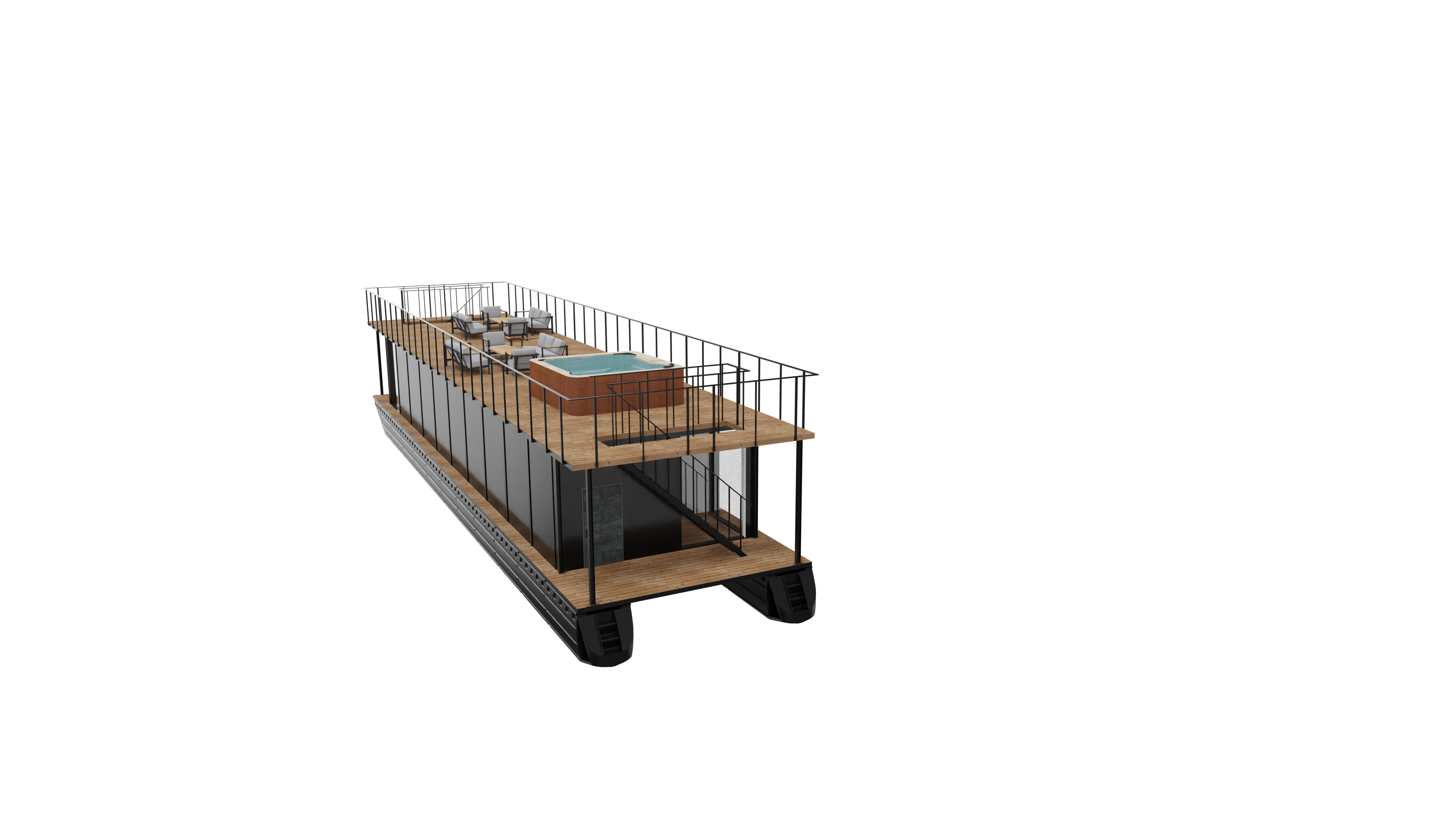Realizujemy pływające punkty usługowe, pawilony, platformy wystawowe i obiekty projektowane indywidualnie pod konkretną funkcję biznesową.